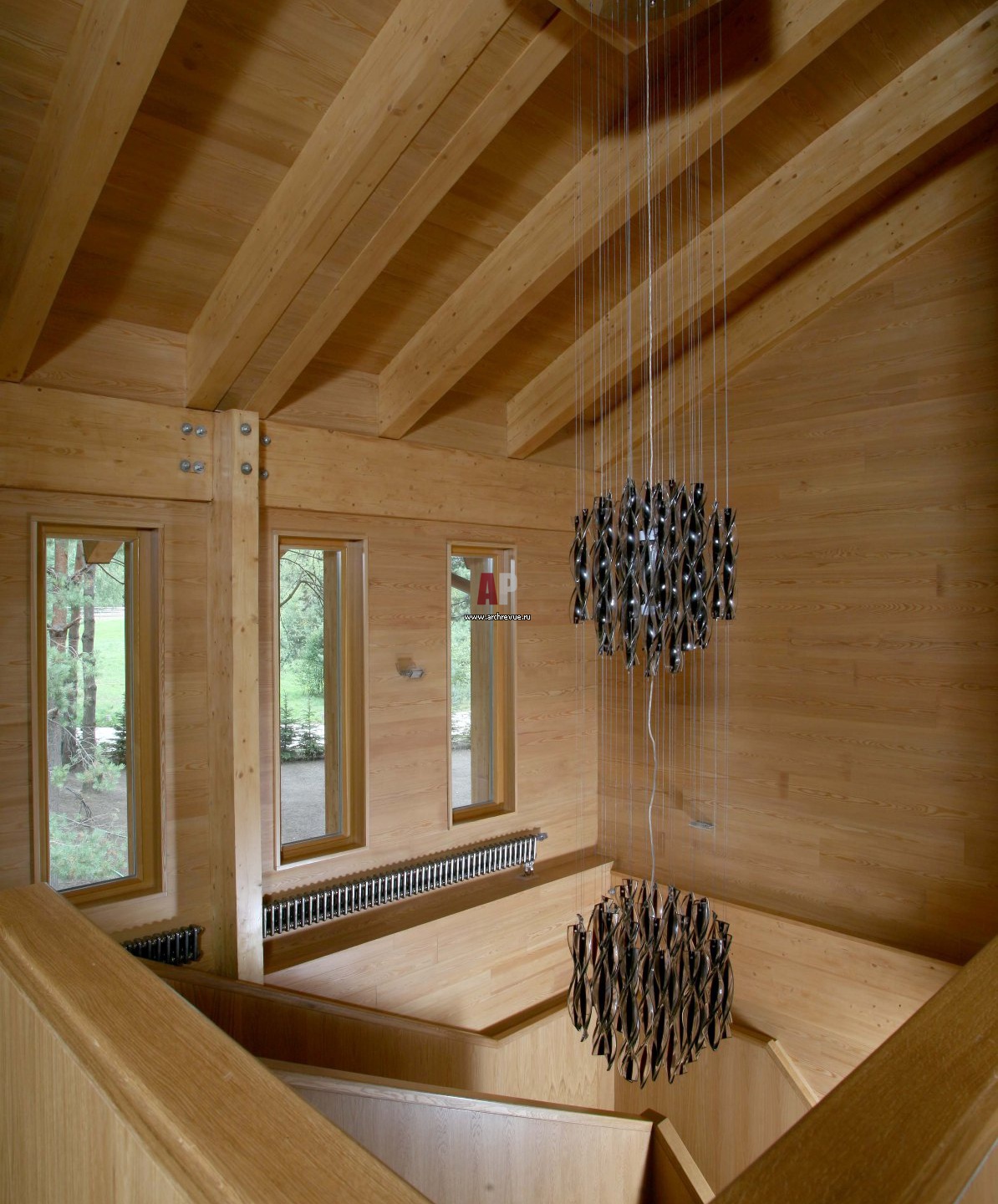 Фото лестницы двухэтажного деревянного дома в эко стиле