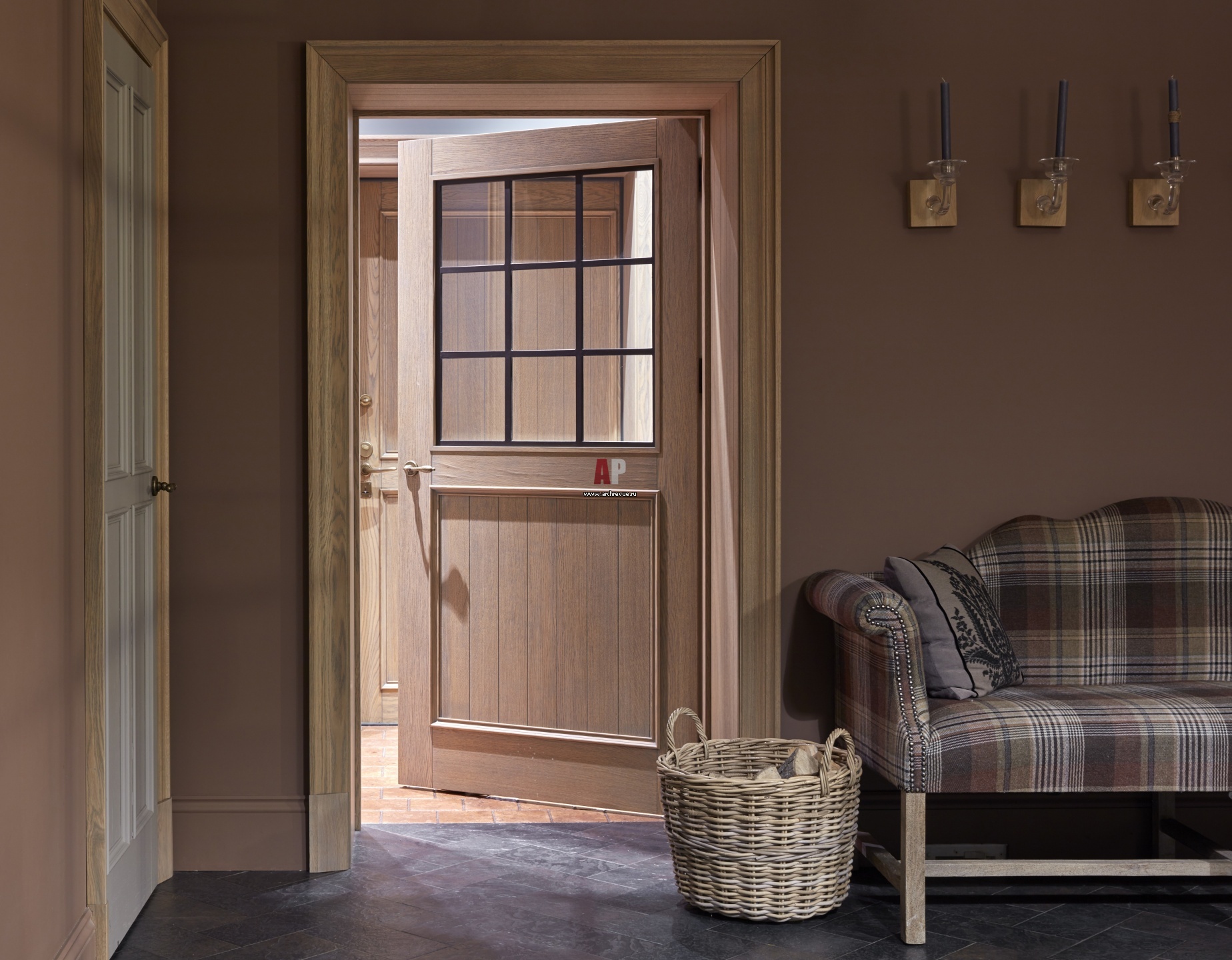 Холл на первом этаже. Диван в клетчатой обивке, Marie's Corner. На полу – черный керамогранит «под сланец», уложенный французской елочкой.