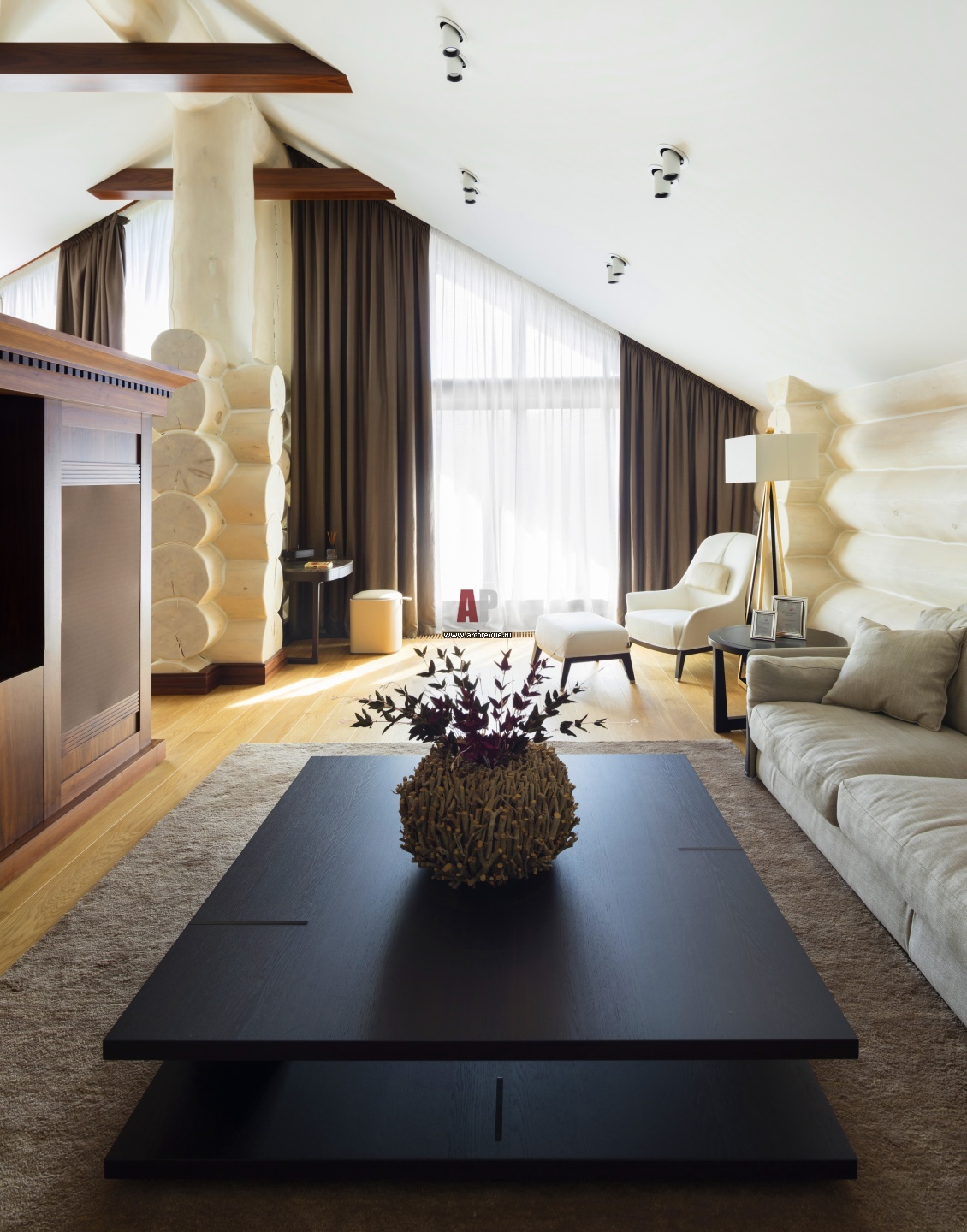 Фото интерьера зоны отдыха деревянного дома в американском стиле