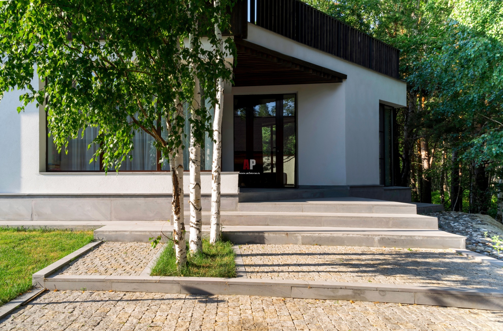 Чтобы максимально раскрыть дом на природу, архитектор предложил использовать угловое остекление. Угловой стеклянный эркер стал продолжением основного квадратного по форме объема и придал облику дома динамику.