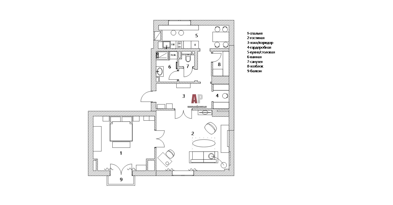 Планировка 2-х комнатной квартиры в историческом доме. Общая площадь – 81 кв. м.