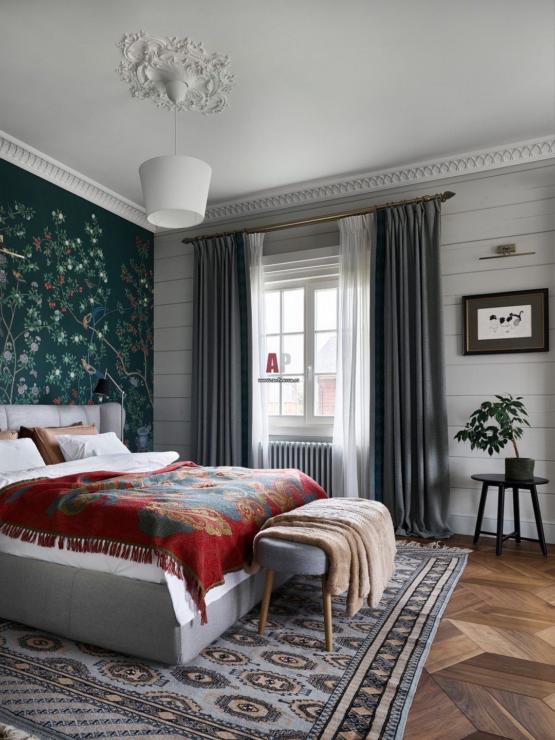 Хозяйская спальня. Карнизы и потолочная розетка из гипса, Auberlet et Laurent, Франция.