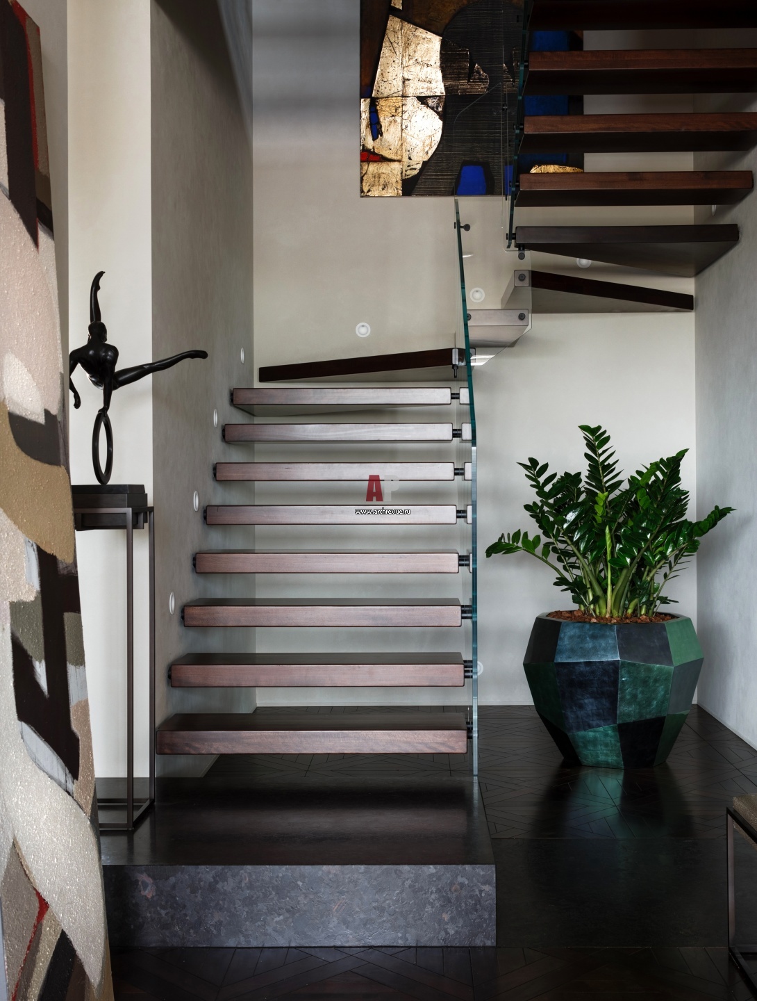 Фото лестницы пентхауса в американском стиле Фото интерьера лестничного холла пентхауса в американском стиле