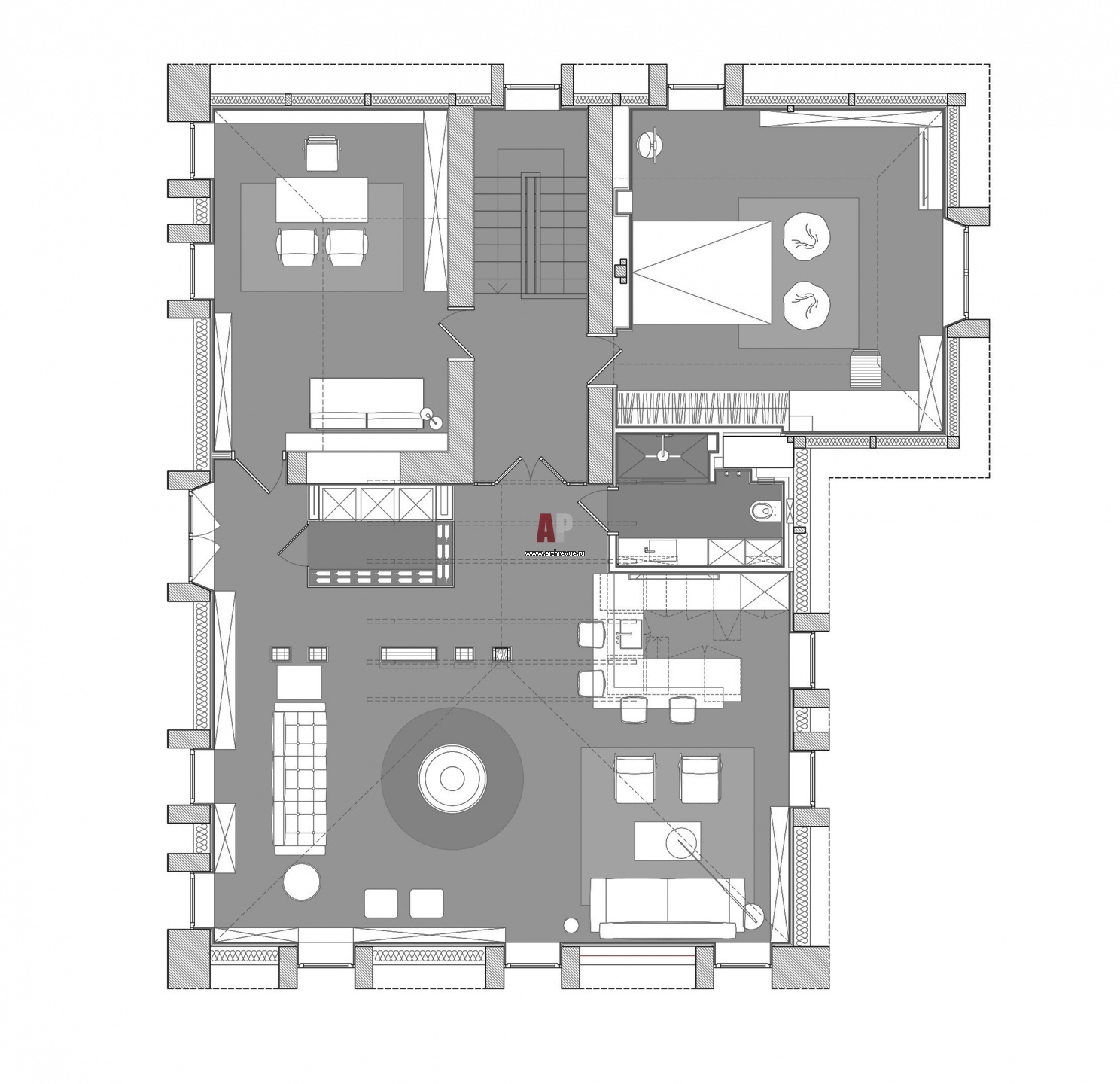 Планировка апартаментов в мансарде. Общая площадь – 145 кв. м.
