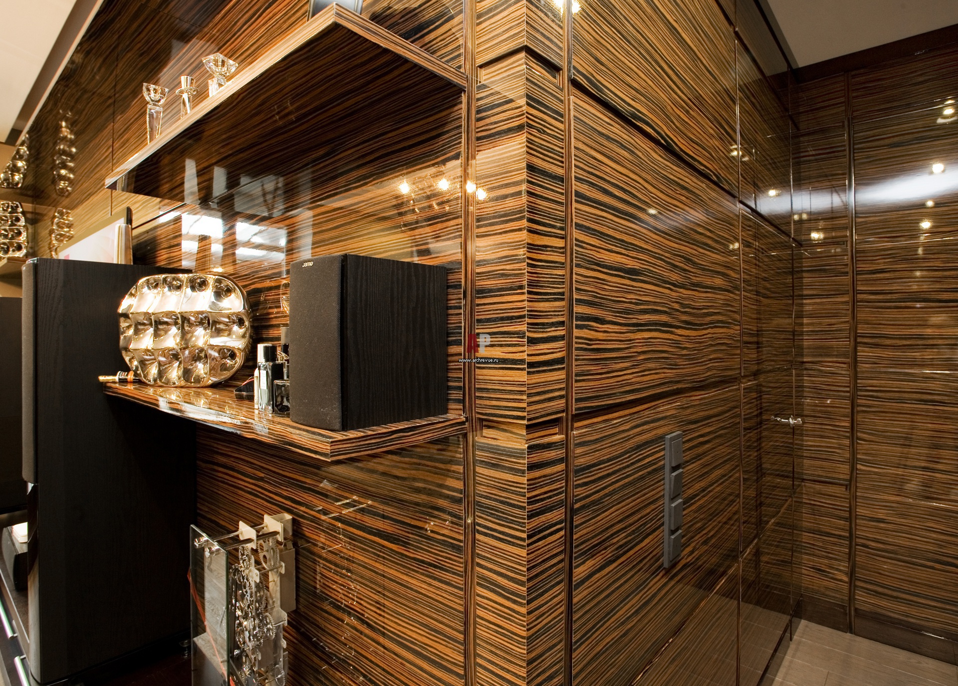 Фото интерьера современной квартиры с панелями из палисандра.