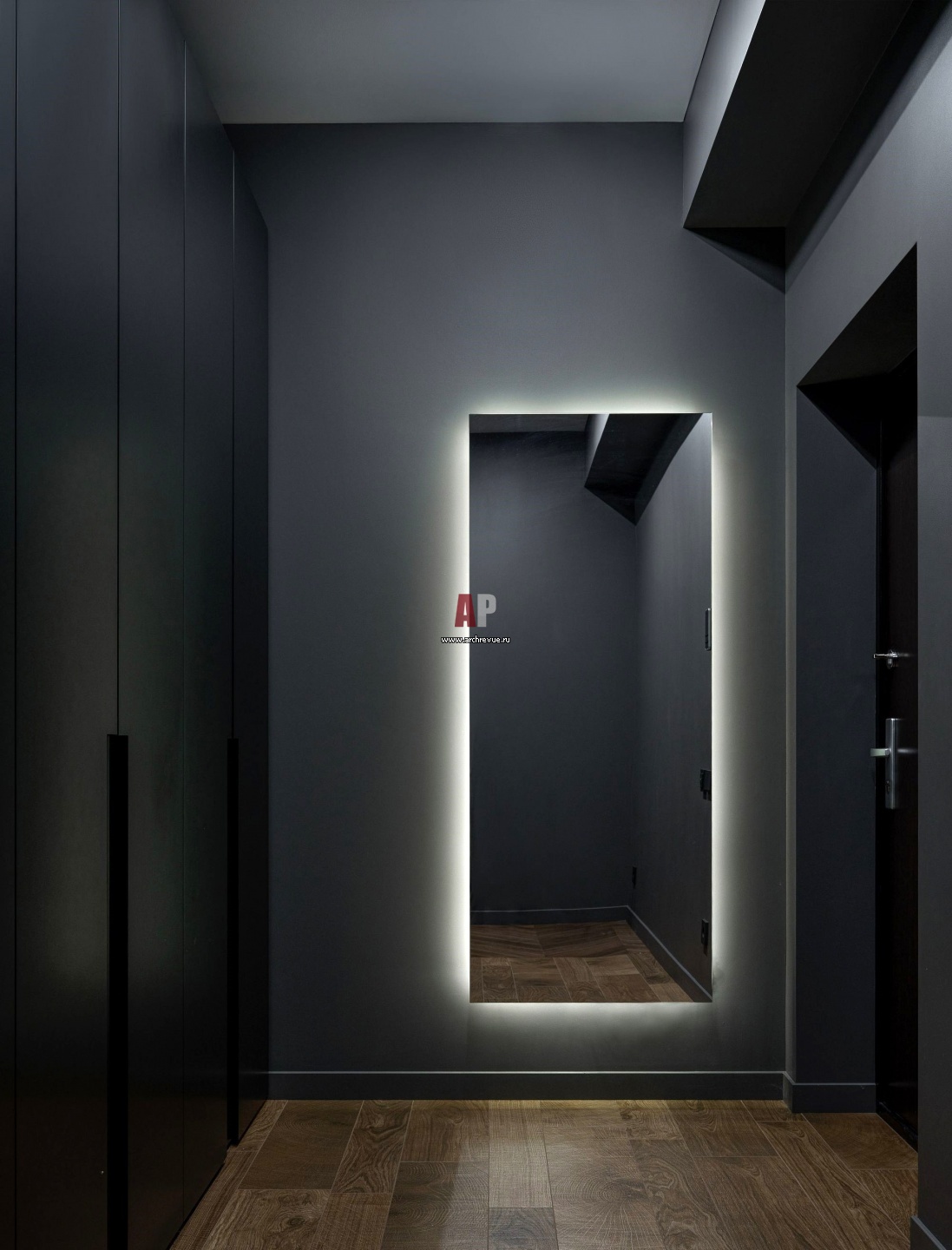 Прихожая с темными графитовыми стенами. Выключатели, Schneider electric, серия Merten D-Life. Использована 5-ти постовая рамка, без разделителей.