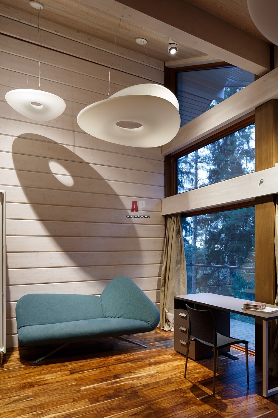 Зона отдыха в одной из детских. Синий диван, Bonaldo. Стол, Battistella. Стул, Desalto.