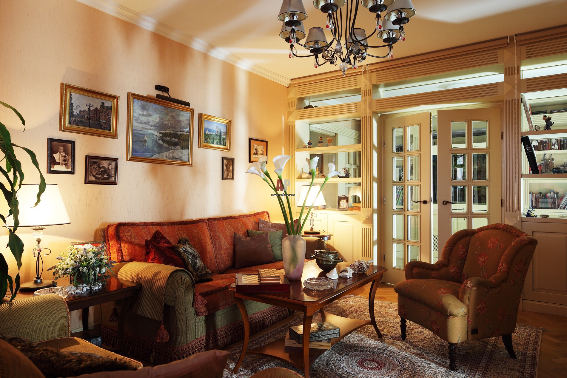Фото интерьера зоны отдыха небольшой квартиры в стиле кантри