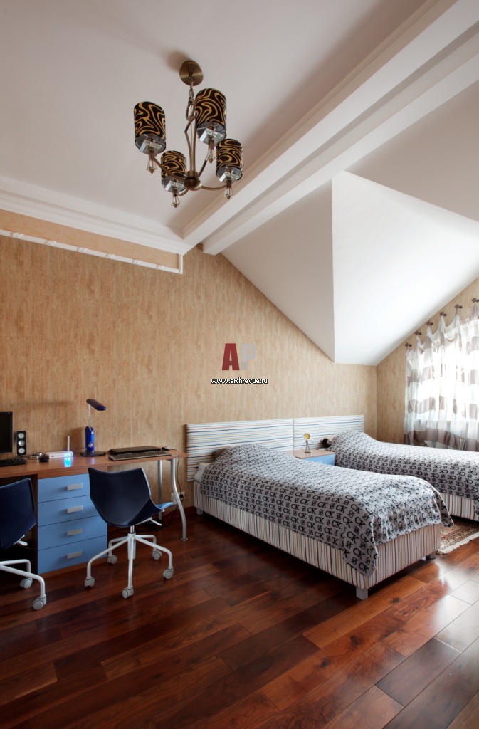 Детская комната на третьем этаже. Мебель из коллекции Smile от фабрики Julia Arredamenti . На полу – массив доски из бразильского ореха.
