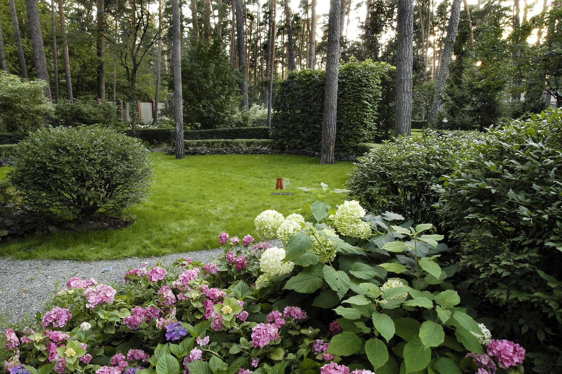Фото ландшафта. Даже цветники, составленные из гортензий и лилейников, имеют здесь аккуратные, графические формы.