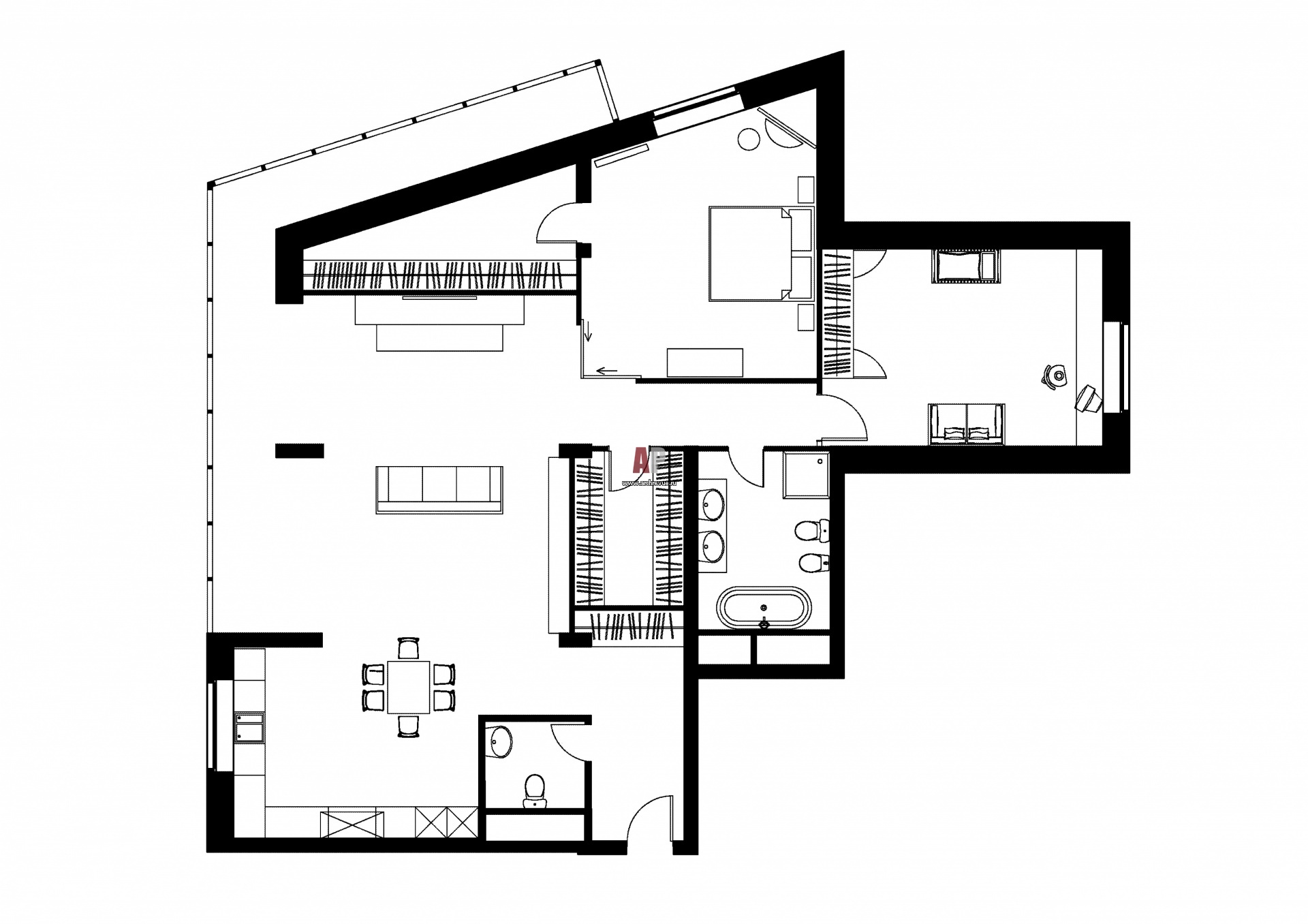 Планировка 3-х комнатной квартиры 158 кв. м с панорамной лоджией.