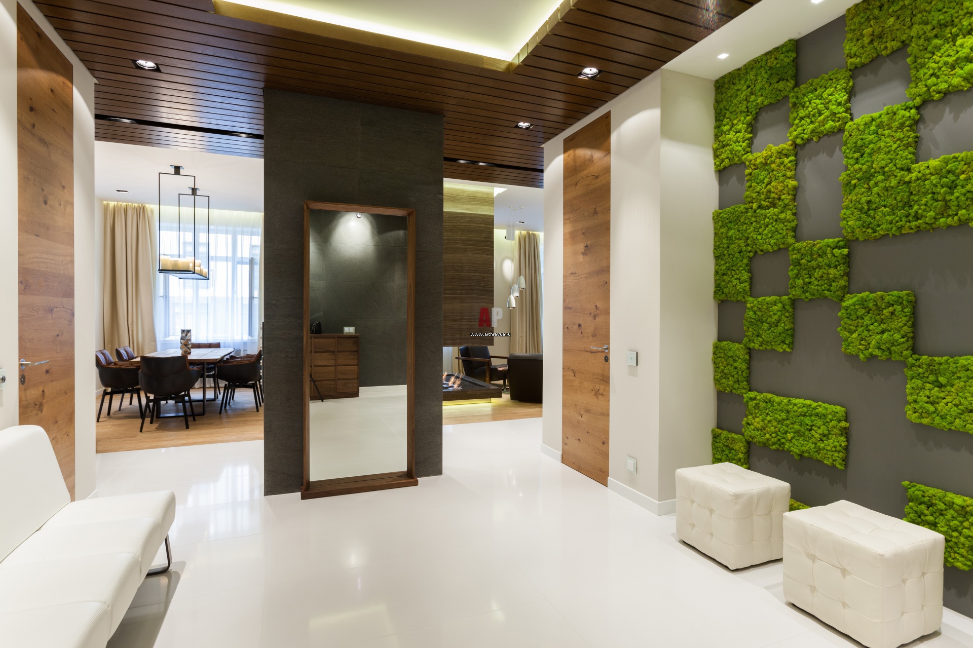 Фото интерьера входной зоны двухуровневой квартиры в эко стиле