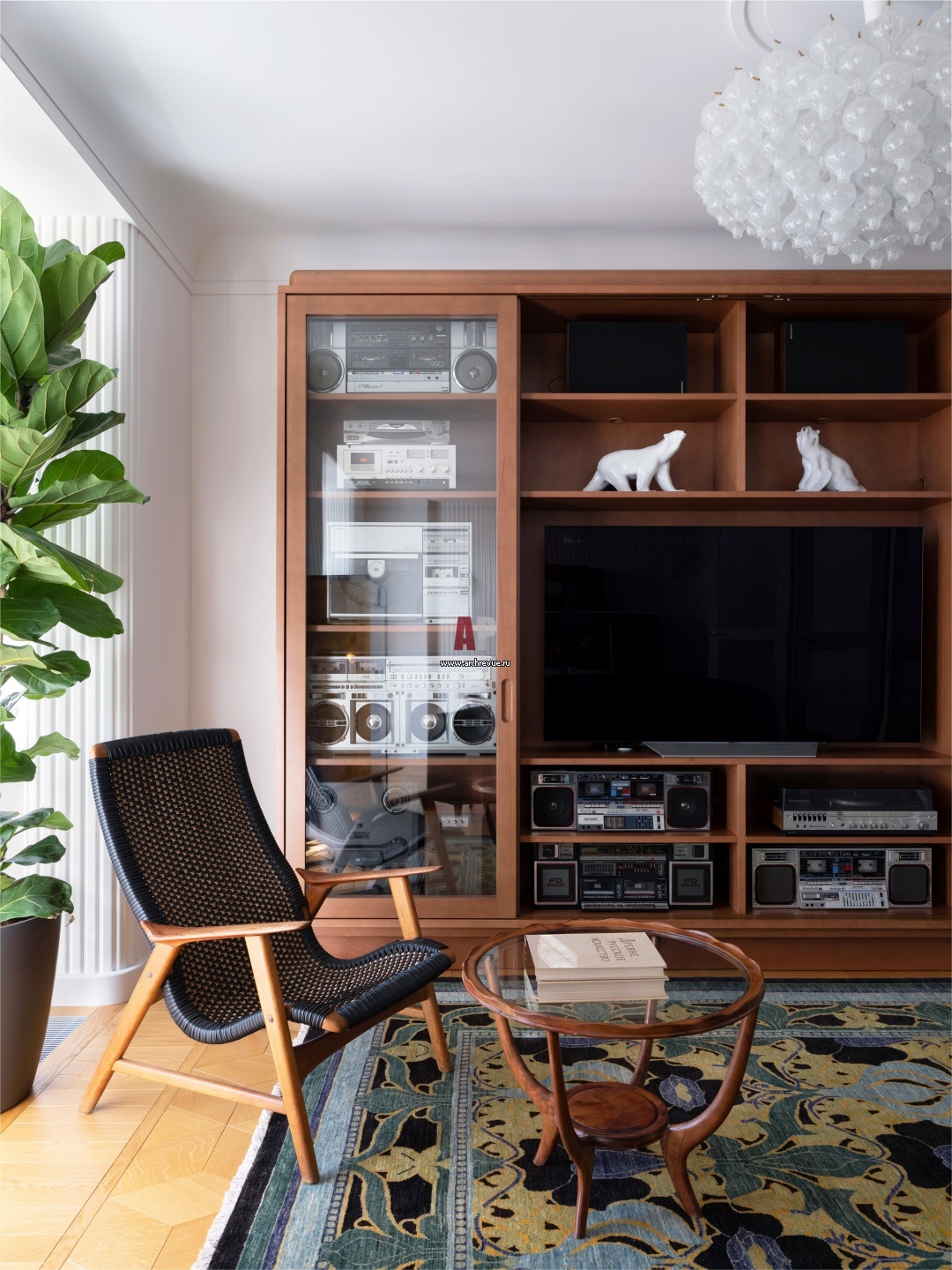 Квартира в стиле ретро для коллекционера. Интерьер гостиной.