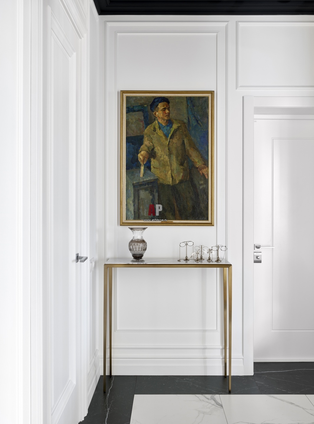 Прихожая. Стены окрашены в белый цвет. На стене – картина «Портрет молодого художника», В.В. Рождественский.