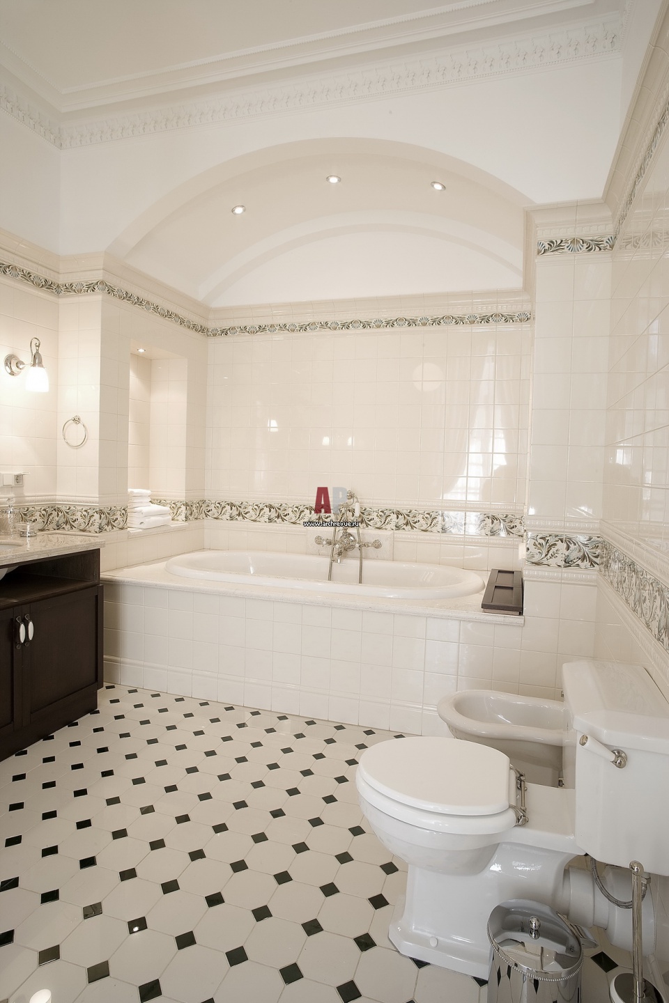 Детский санузел выполнен в английском стиле. Сантехника Lefroy Brooks, английская плитка, поставщик «Интерьерный салон» («Биг Бен»).