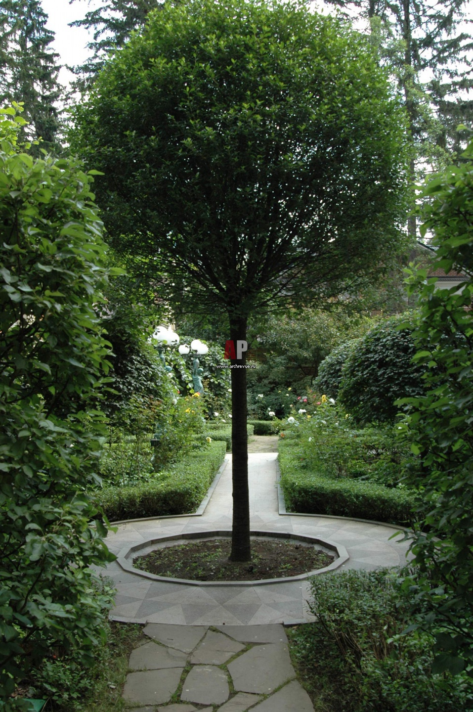 Роль вертикальных акцентов, придающих садовому ландшафту особую динамику, играют деревья. В центре сада расположились четыре стриженых клена, которые предварительно были искусственно состарены.