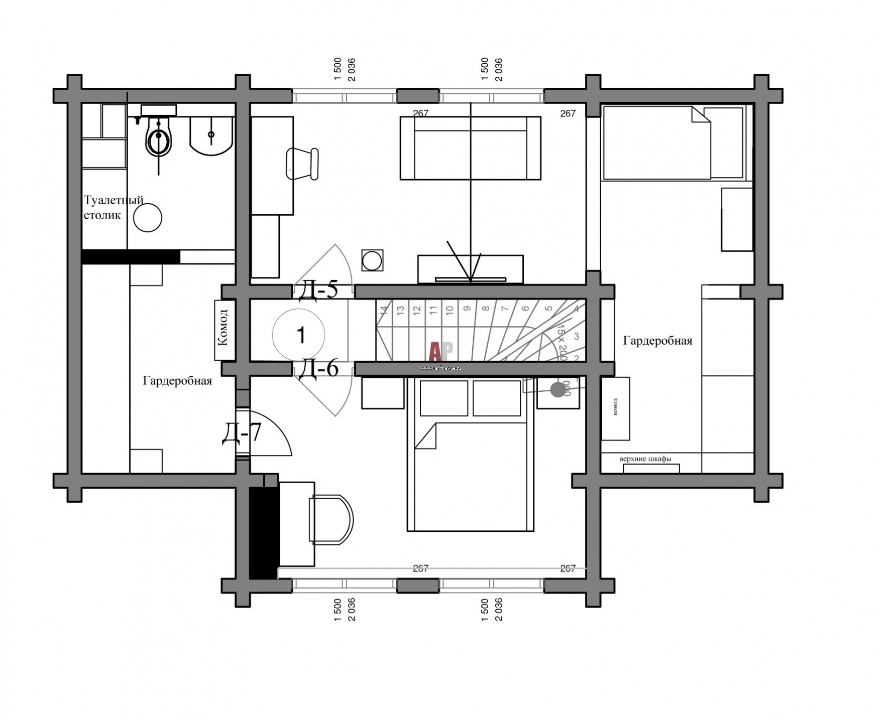 План второго этажа небольшого двухэтажного деревянного дома, 132 кв. м.