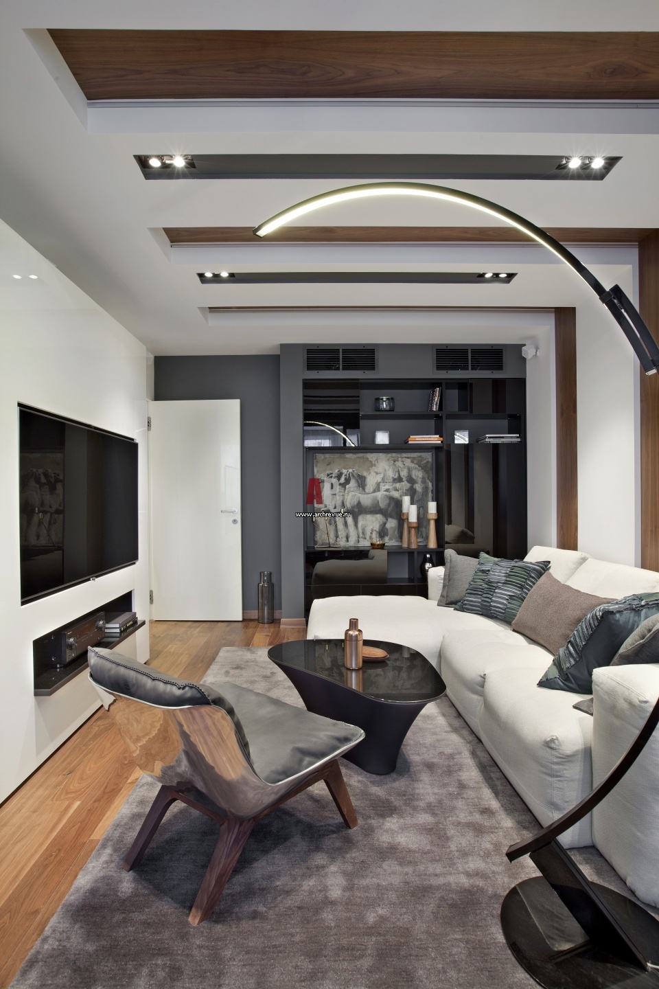 Дизайнерский интерьер гостиной квартиры в типовом доме серии П-44. Торшер Kundalini, Kyudo Floor Lamp.