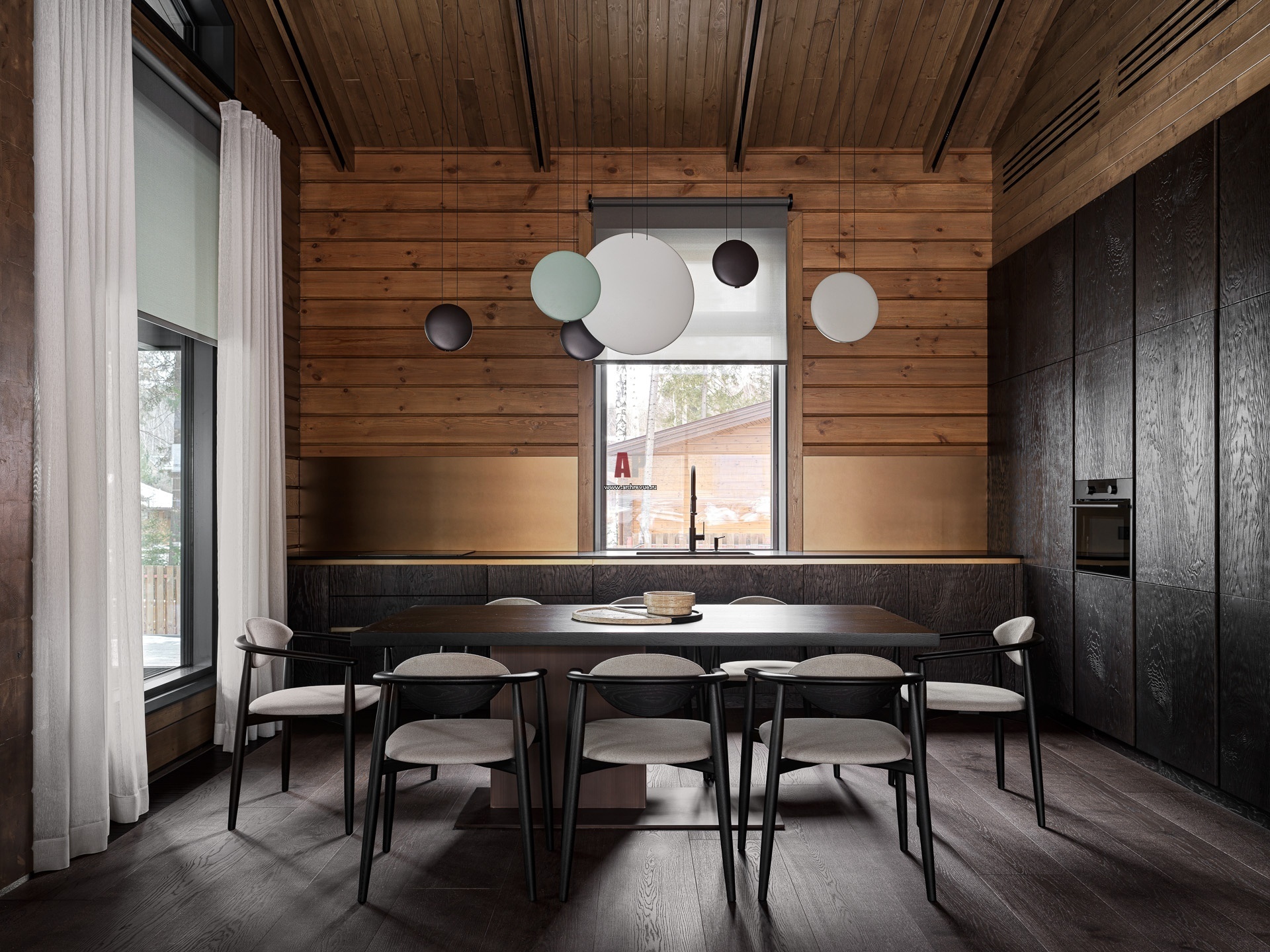 Кухня-столовая. Стулья обеденные, Novamobili. Стол, Riva 1920.