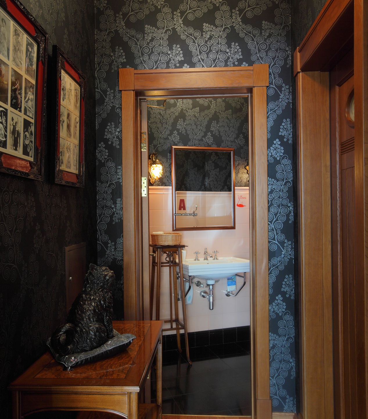 Фото интерьера санузла. Санузлы в номерах также выполнены в стилистике модерна.