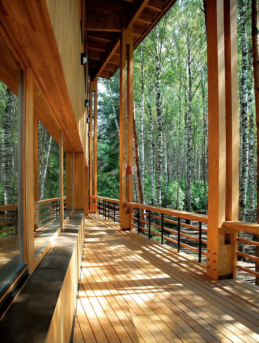 Фото веранды двухэтажного деревянного дома в эко стиле