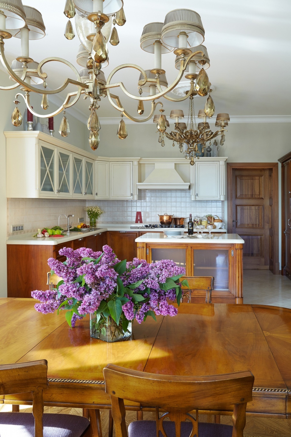 Первый этаж – это общее пространство, где одно помещение плавно перетекает в другое: холл, гостиная, столовая, кухня зонированы лишь визуально. Кухня, Bamax.