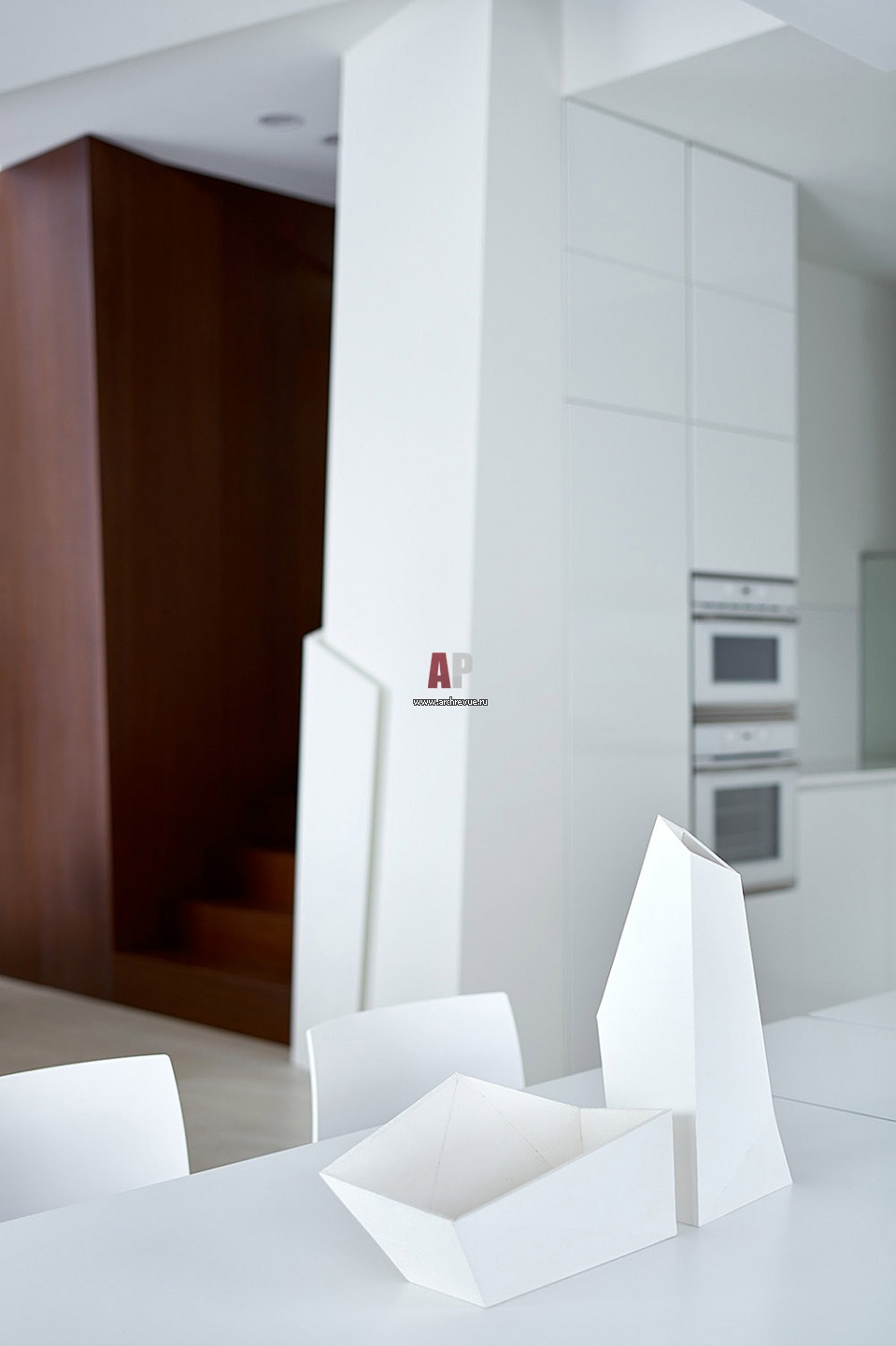 Интерьер кухни в стиле минимализм. Авангардная ваза, посуда, по дизайну Петра Зайцева.