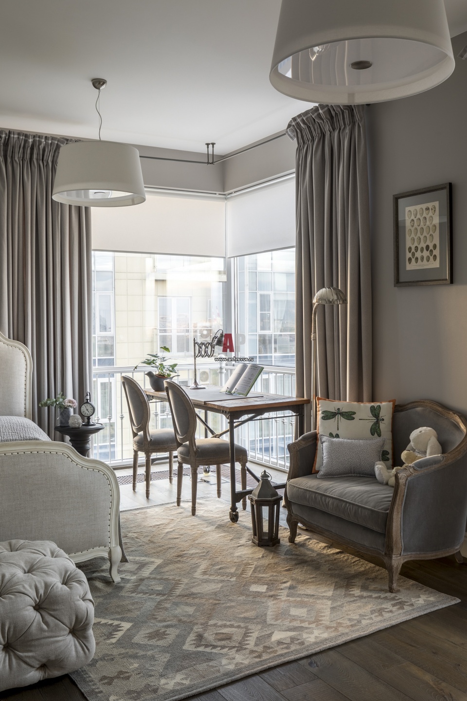 Комната младшей дочери с угловым окном. Ковер, Dovlet House. Светильники, Eichholtz, Wever & Ducré. Мебель, Restoration Hardware.