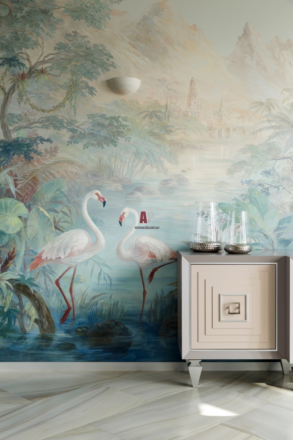 Стены зимнего сада-столовой оформлены художественной росписью.