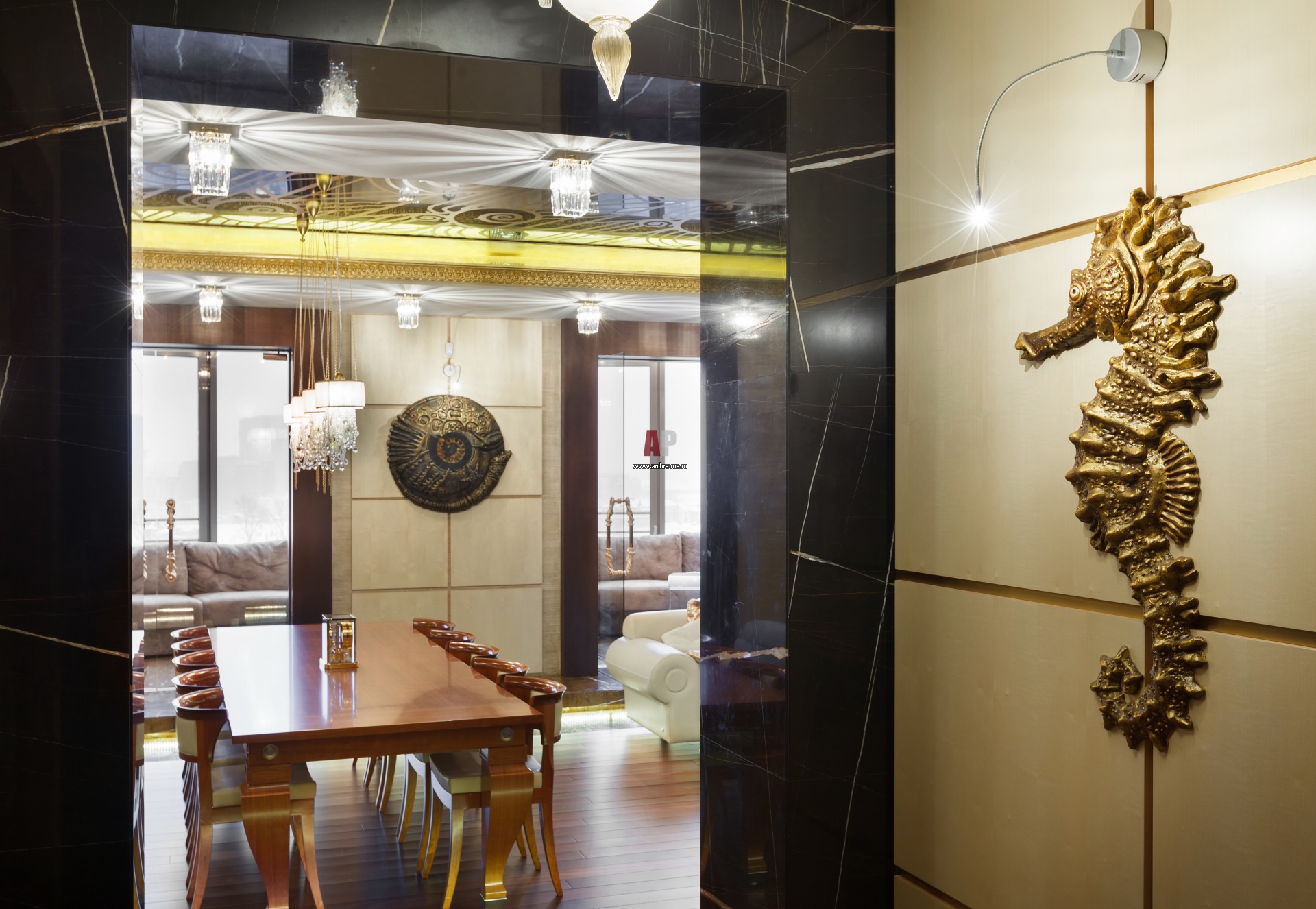Вид из прихожей на столовую. Морской конек из чеканного металла работы художника Дмитрия Агузарова.