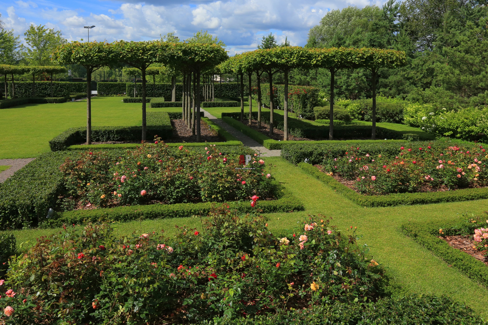 В геометрический ландшафтный декор элегантно вписаны лабиринты в виде изящных завитков, созданные с помощью топиарного искусства, на однотонном рулонном газоне прекрасно сморятся живописные пятна разных сортов гортензии и роскошных роз.