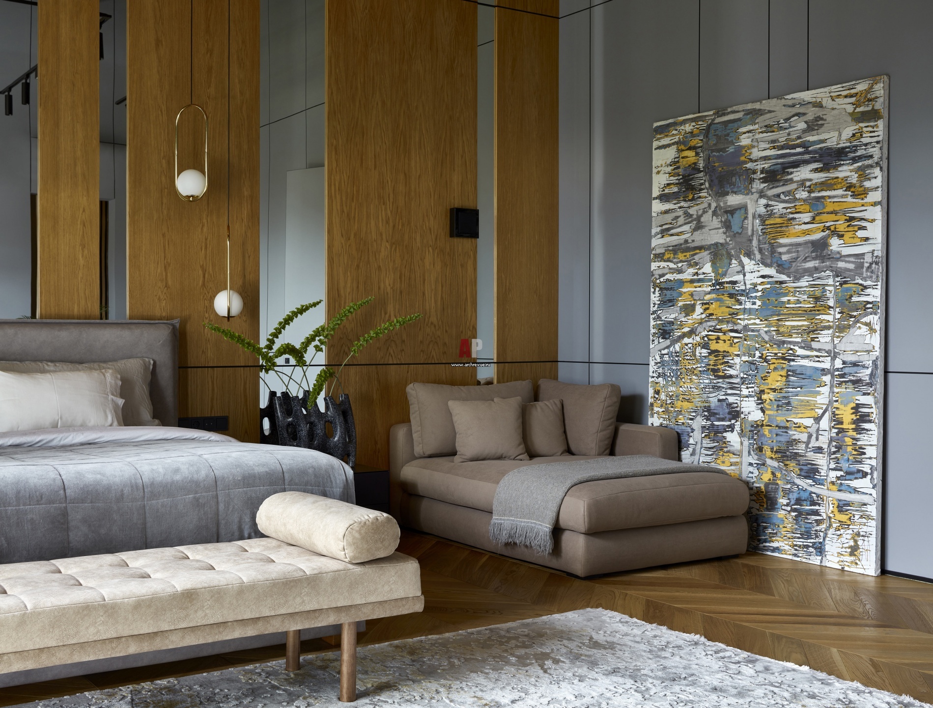 Хозяйская спальня. Краска, Little Greene. Козетка изготовлена на заказ.