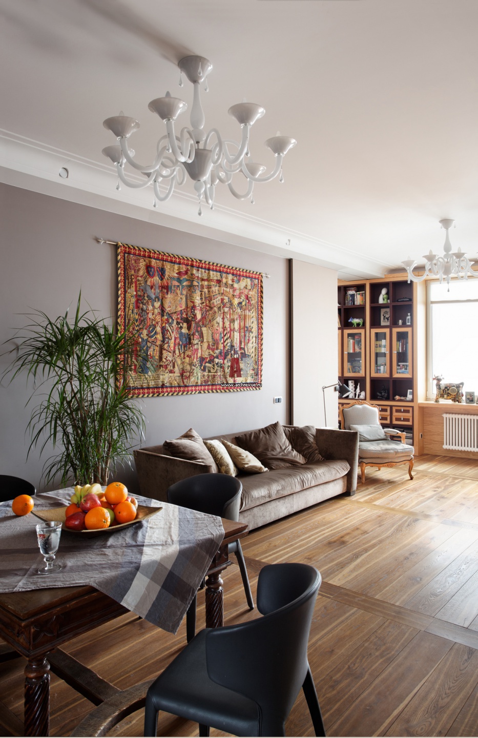Мягкая зона Flexform в гостиной акцентирована гобеленом ручной работы с рисунком на сюжет из жизни Средневековой Европы.