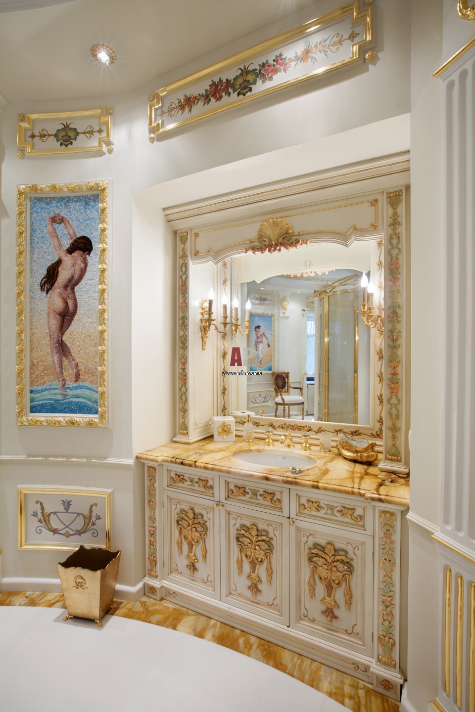 На мозаичных панно в ванной комнате изображены аллегорические фигуры, символизирующие страны Средиземноморья.