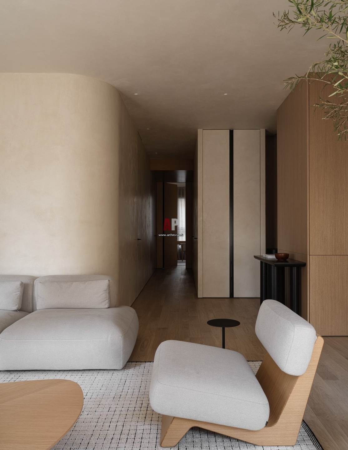 Интерьер 4-х комнатной квартиры с природными мотивами и видом на заповедную зону