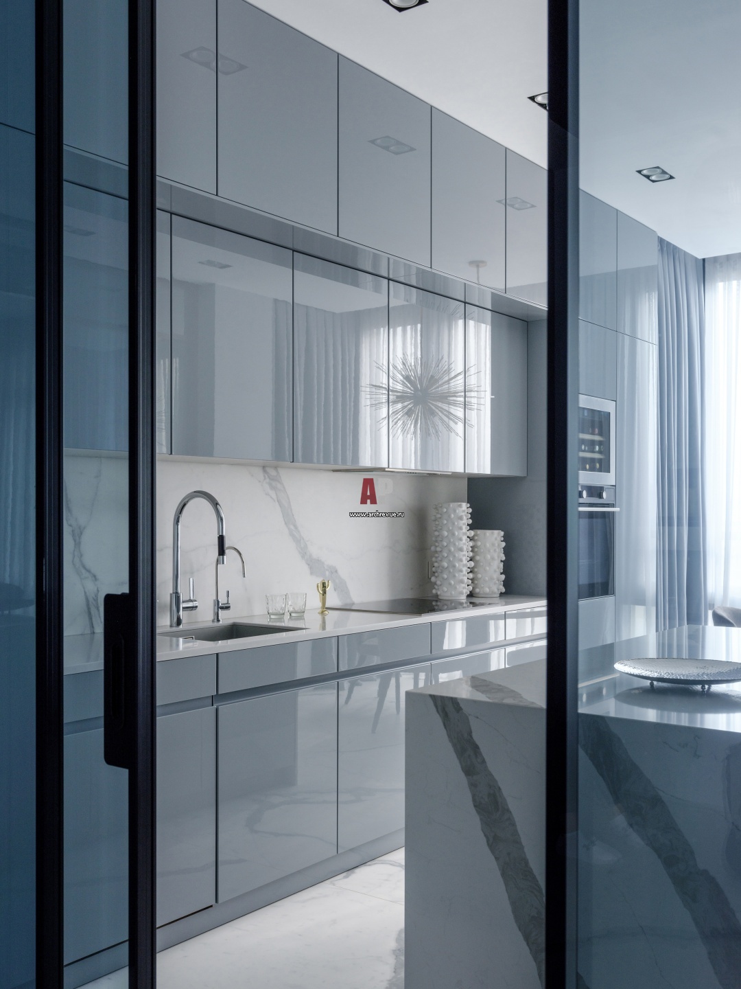 Вид из прихожей в кухню. Кухня Leicht, композиция LARGO-LG-A.