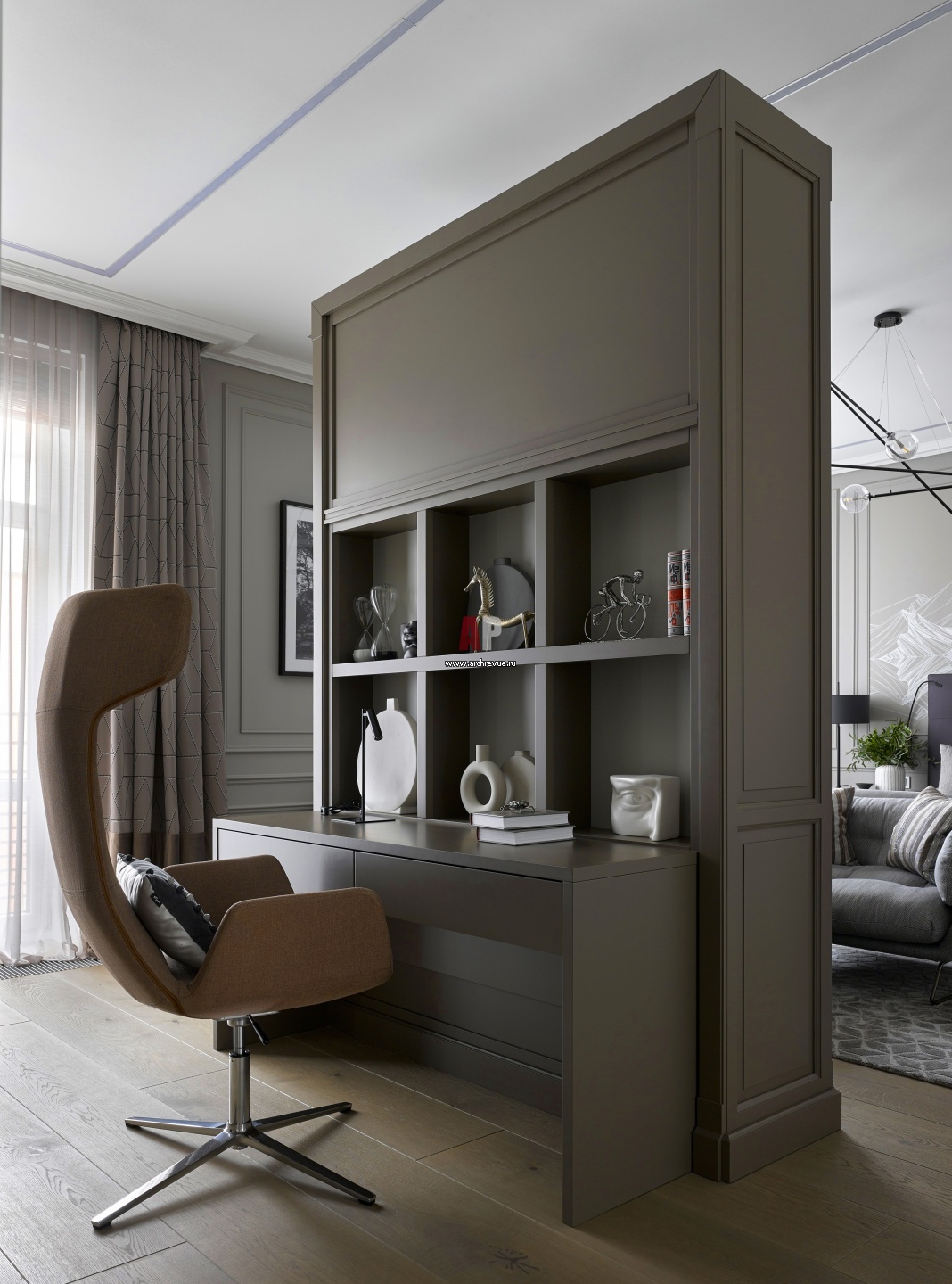 Комната сына. Шкаф-перегородка, изготовленный на заказ компанией La Ebanisteria, разделяет зону сна и мини-кабинет.