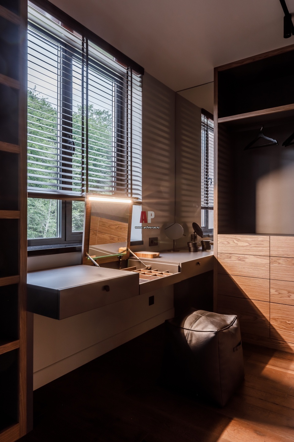 Гардеробная с туалетным столиком при хозяйской спальне.