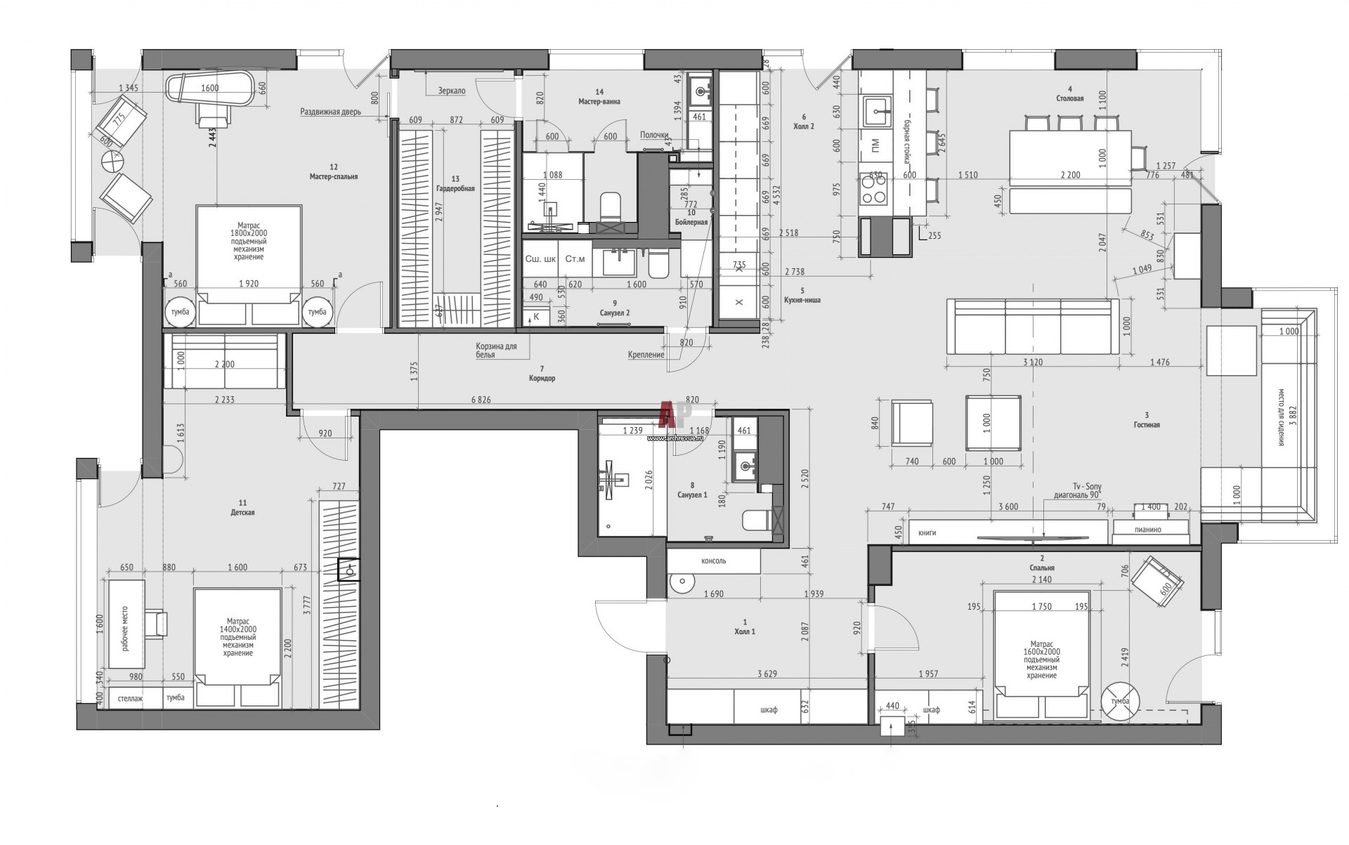 Перепланировка 4-х комнатной квартиры, 206 кв. м.