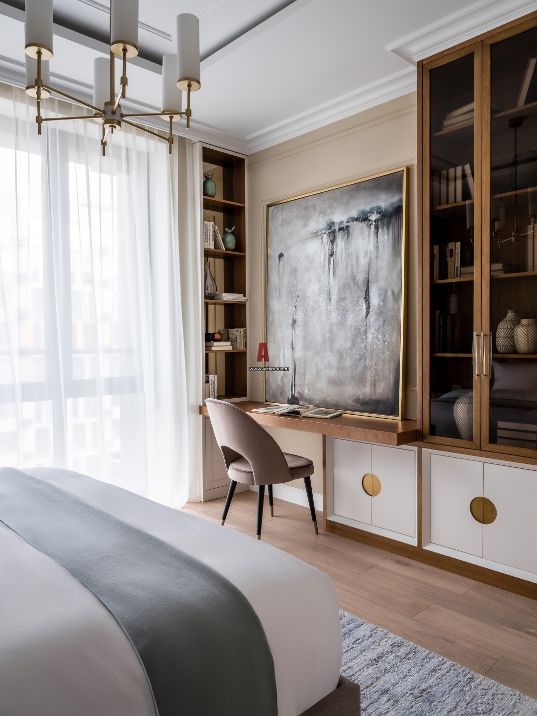 Семейная квартира в ЖК «Резиденция Сколково». Интерьер главной спальни.