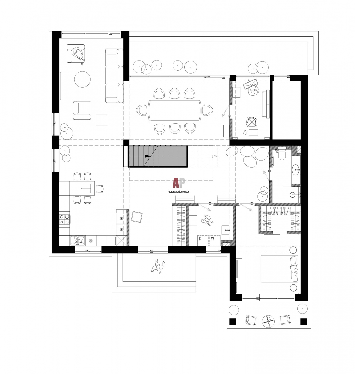 План первого этажа двухэтажного дома в Сочи. Общая площадь – 300 кв. м.