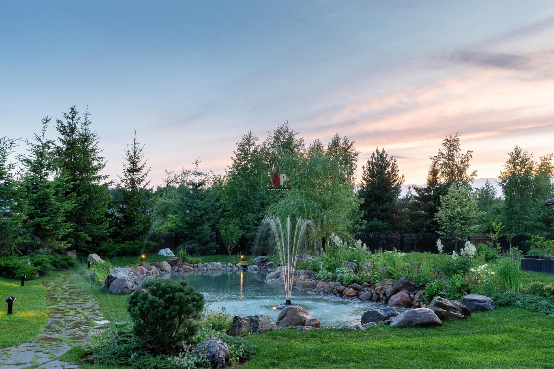 Эклектичный дом в Подмосковье. Фото ландшафта.