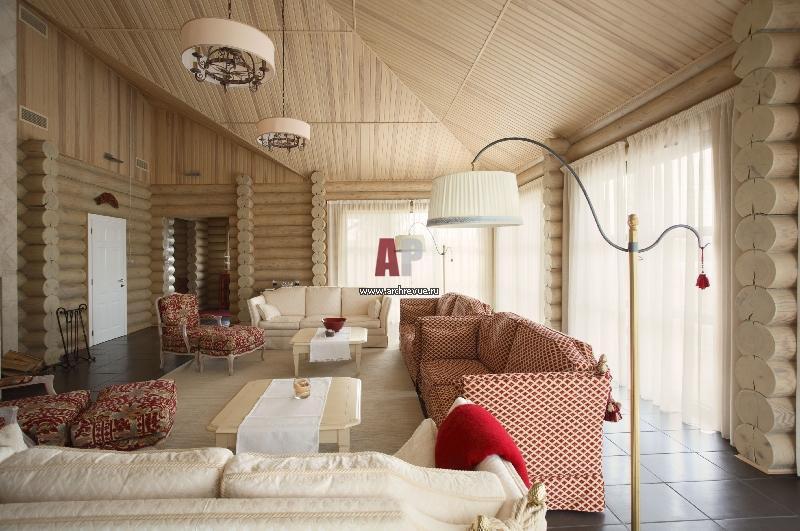Фото интерьера гостиной банного дома в гостевом комплексе