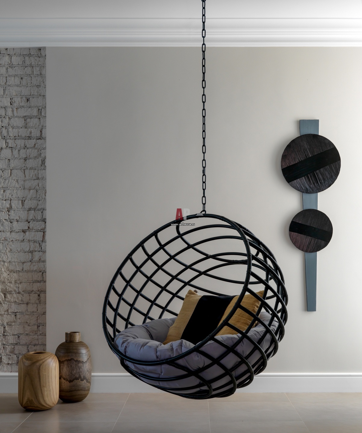 Дом создался как место для отдыха, поэтому уличное подвесное кресло-качели здесь более, чем уместно.