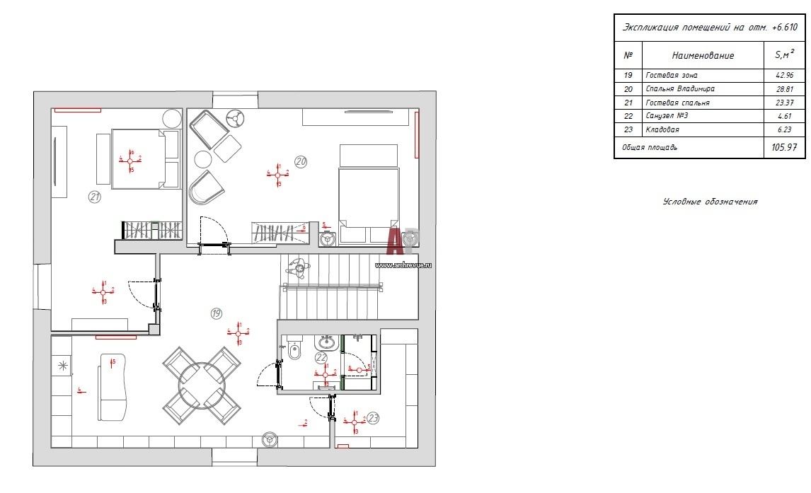 Планировка 3 этажа 3-х этажного дома для большой семьи в Подмосковье.