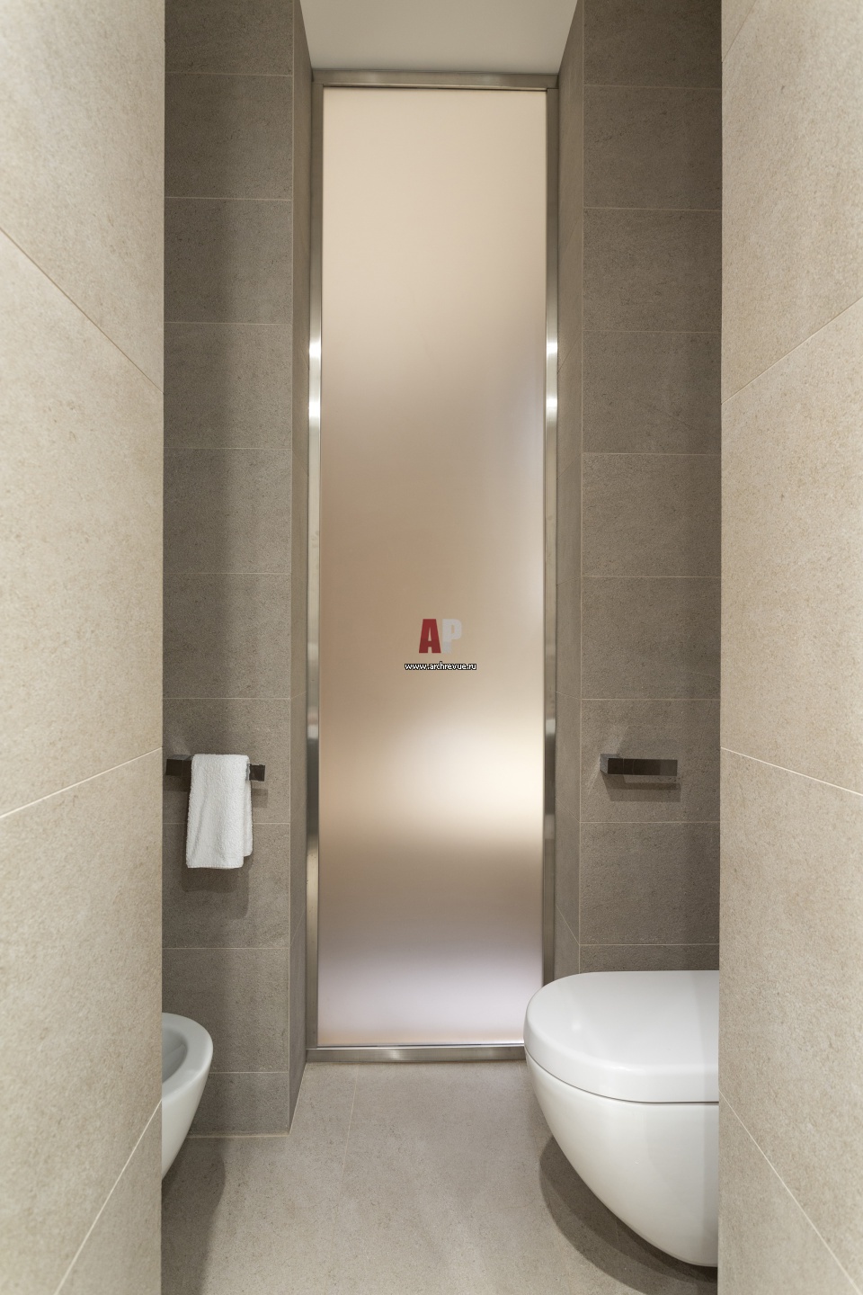 Зона туалета расположена в нише. Унитаз, биде, Villeroy & Boch, серия Subway.