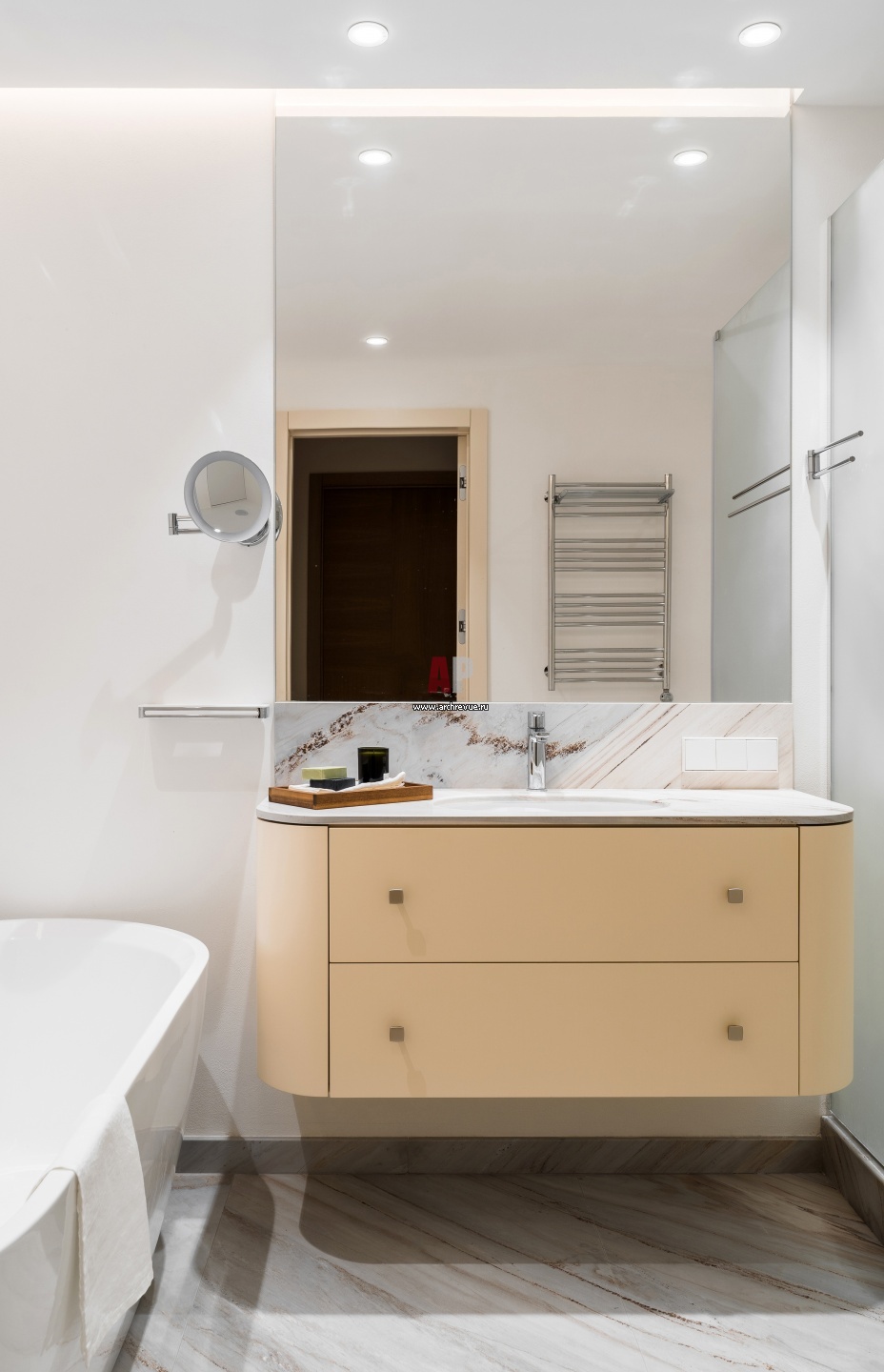 Хозяйский санузел. На полу – натуральный мрамор Palissandro.