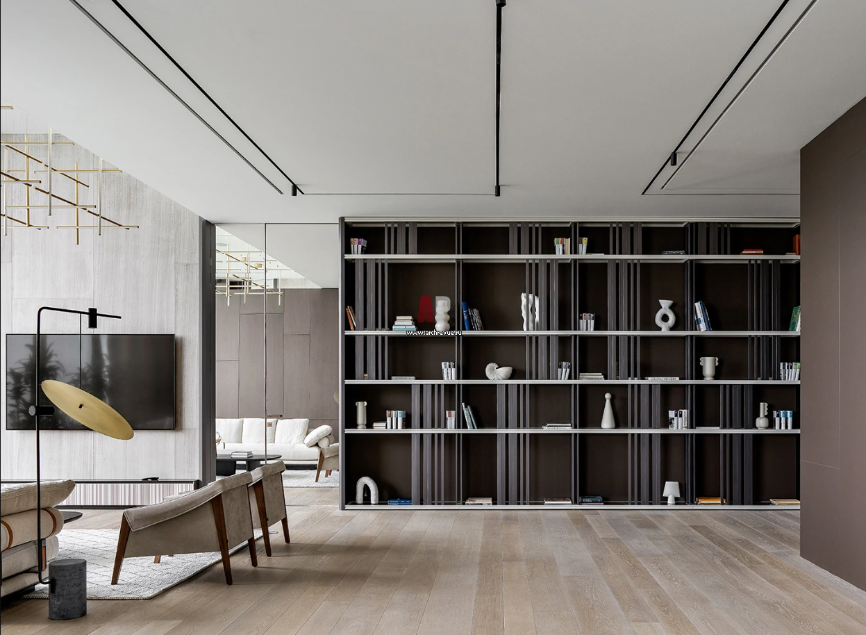 Трехэтажная современная резиденция на Рублево-Успенском шоссе. Малая гостиная с библиотекой.