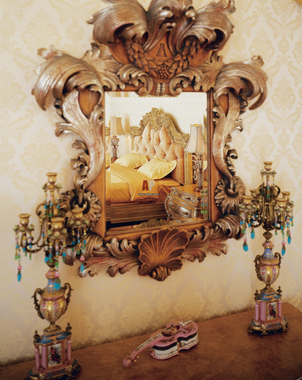 Интерьер классической спальни в золотисто-бежевых тонах.