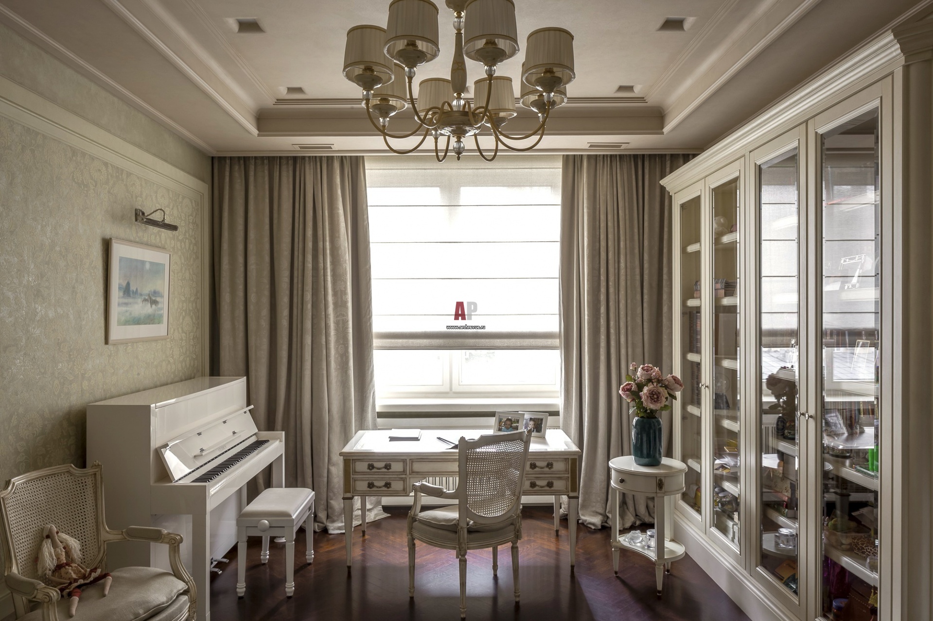 Интерьер детской комнаты в кремовых тонах. Кровать, кресло, письменный стол, стул, Salda. Комод, Angelo Cappellini. Прикроватная тумбочка, Galimberti Nino.
